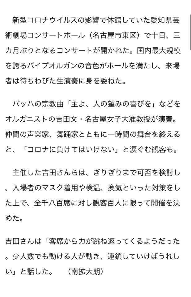 BLOG 11Jun2020 昨日のコンサートのこと、今日の毎日新聞に掲載されました◎ 中日新聞にも◎ ありがとうございます✨✨✨ Tweet Share LINE BLOG コメント: 0 6-10 7-1 コメント ( 0 ) トラックバック ( 0 ) この記事へのコメントはありません。 この記事へのトラックバックはありません。 トラックバック URL 返信をキャンセルする。 名前 ( 必須 ) E-MAIL ( 必須 ) ※ 公開されません URL Δ
